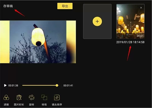 在图片编辑方面,蜜蜂剪辑也可以为图片加转场、滤镜以及镜头排序。添加方法和视频编辑一样。