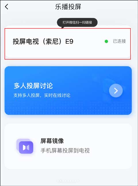 -搜索连接,打开乐播APP,会自动搜索同一网络下的电视/投影大屏