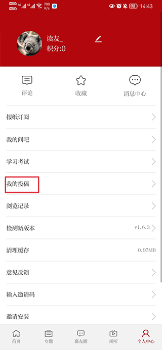 一、打开读嘉新闻app,在我的界面中点击我的投稿
