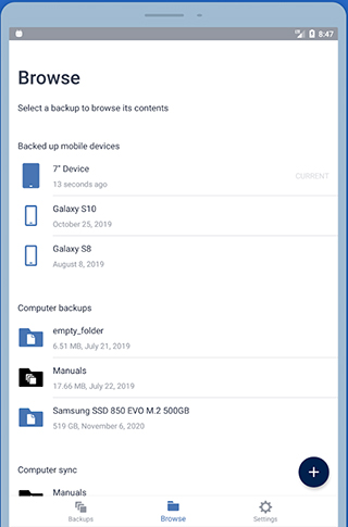 • 从当前设备或其他移动设备访问备份文件,以便检索数据