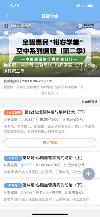 4、而且所有的直播会详细的为大家介绍播放时间、讲师、分行、内容等信息