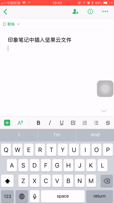 1、在印象笔记中插入坚果云文件 印象笔记7.16.1版本以上,可从坚果云内直接添加附件到笔记内容中: