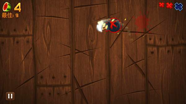 4、切水果的时候,玩家还需要注意突然出现的炸弹。如果玩家触碰炸弹,游戏就会结束。