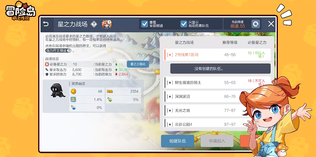①在星之力战场可以创建队伍也可以加入别人的队伍之中