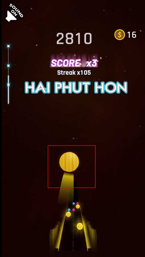 2、您将观察到具有预定颜色的路径和球。这种颜色会不时改变,需要你注意的事情。同时,当您需要滑动屏幕将球向左或向右拖动时,控制方法也很简单。总会有和你同色的球,你可以让它们消失并继续前进。同时,根据每首歌曲的不同,他们的难度也会有所不同。