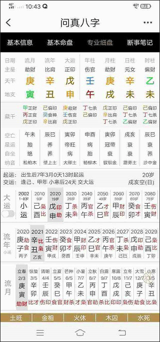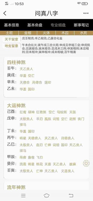 更取命宫、胎元、大运、小运、流年,配合行年太岁、月令等的五行生克制化定休咎。
