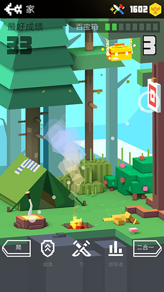 刀和树桩的收集组合。跳转货架上和收集宝物袋。爬上树和捕捉无人机。命中目标奖金!