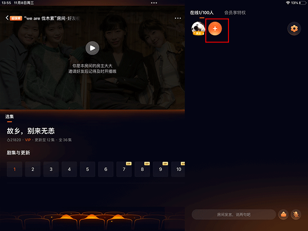 5、好友加入房间后点击播放按钮就可以一起观看电视啦,观看时还可以聊天哦