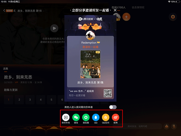 4、然后将房间二维码分享给好友