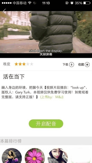2、【全新方式】摆脱枯燥传统的学习方式,通过配音学习英语、提升口语听力。离线配音、离线合成,生词翻译,随时随地玩转配音!