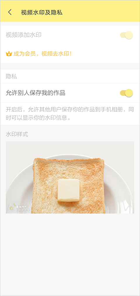 2、如开通了会员,在此页面点击“视频添加水印”右侧的按钮关闭即可去除。