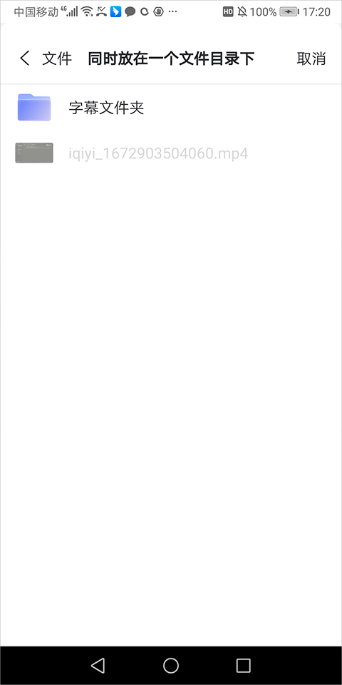 用户在云盘上播放视频时出现没有字幕的原因多半是因为字幕文件和视频文件没有放在同一个文件夹下,或都放在根文件目录下。也有些用户的视频文件下的文件目录中没有字幕文件,例如下图页面所示,在同一个文件目录下只有视频文件,而没有字幕文件