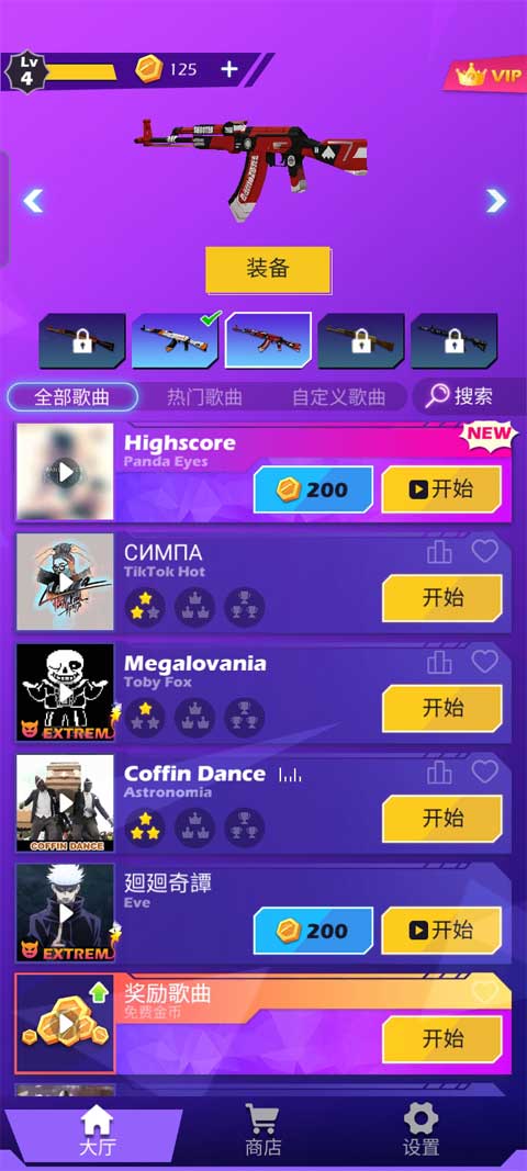 1、打开游戏之后选择自己喜欢的枪支皮肤装备上,然后选择音乐开始玩耍。