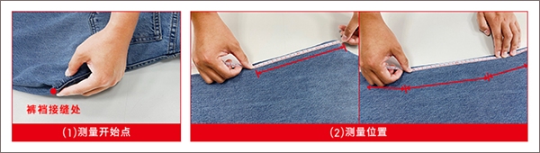 (1)找到裤裆接缝处,由此开始测量。