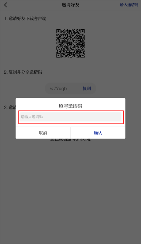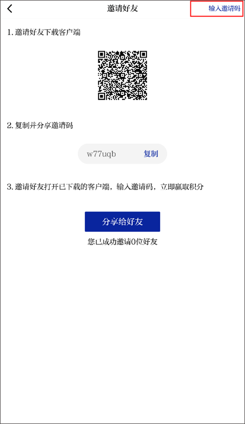第六步:点击右上角输入邀请码;