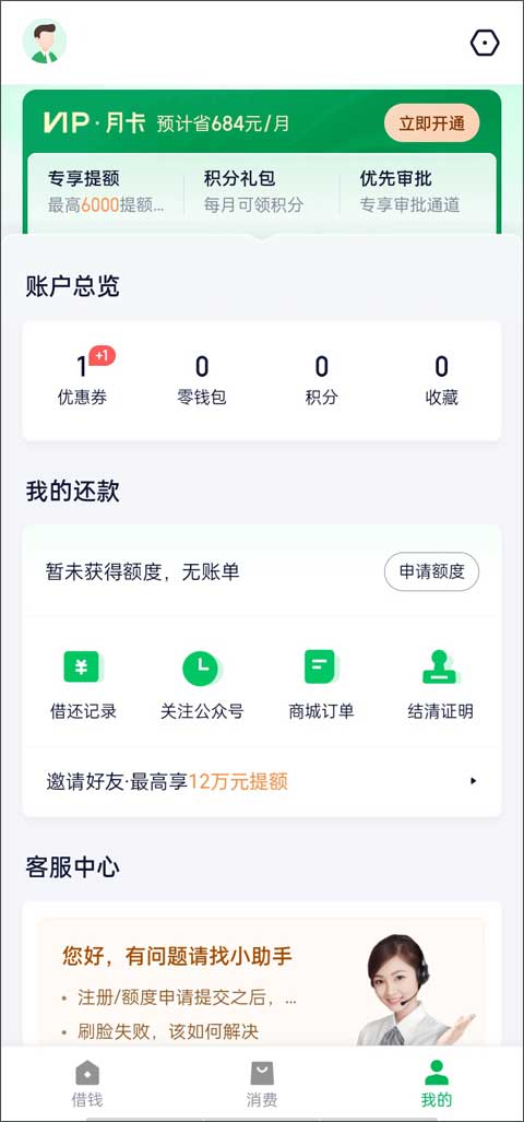 4、在我的界面中用户能够查看自己的还款和借款信息记录,也能从客服中心中得到问题的答案。