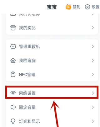 2、点击【宝宝】,点击【网络设置】;