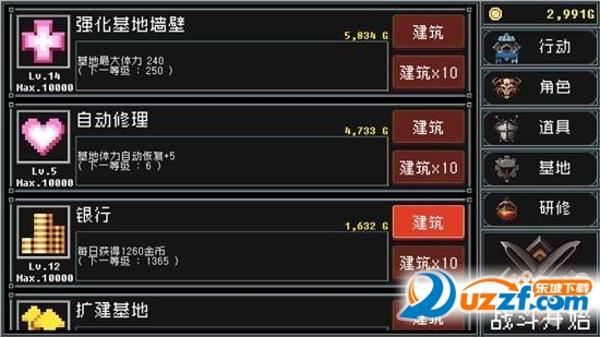 这里有“生存”、“无限的军势”、“试炼之塔”三个模式,“生存”其实就是最常规的关卡模式,其余两个我想从字面上就能够理解它们的玩法含义了,当然了,为了积累经验以及提升等级,还是得从生存模式玩起。每一关我们的任务就是要守卫基地,你可以选择雇佣其他的英雄一起驻守,最多