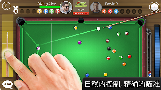 真实的桌面台球游戏,8 Ball Kings of Pool(8球池中之王)直接就可以用指尖操控,和网友一起进行比拼,瞄准好射击,将你的台球打入进洞。