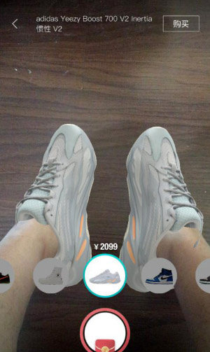 4、挑选你中意的鞋型就可以点“上脚试试”,是不是很逼真,得物(毒)APP不愧是新一代潮流网购社区,宅在家里也能帮大家过过鞋瘾。