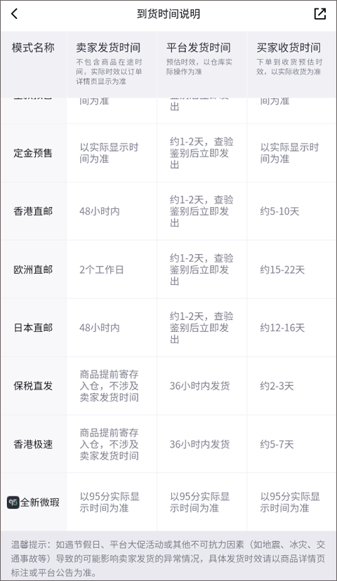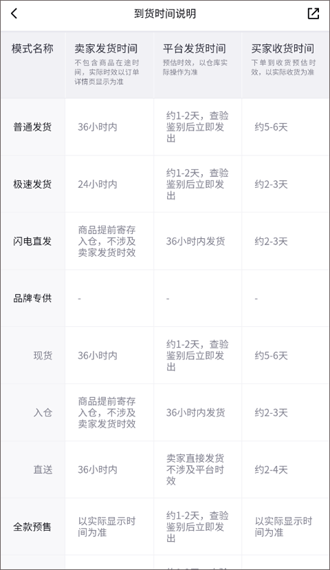 (1)「全款预售」买家对未正式上市商品提前付全款后,卖家在规定时间内发货至平台,平台查验鉴别通过后,发货至买家;