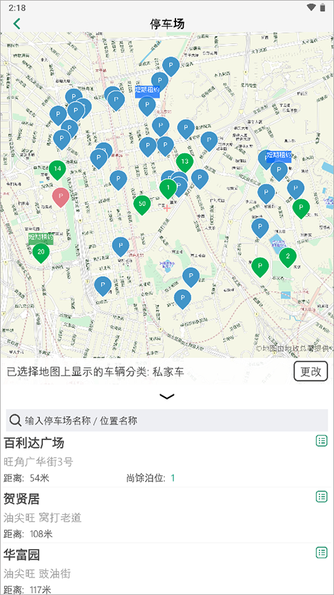 3、在这里就可以找到自己所需要的停车场了哦。