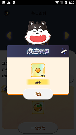 4、除了看广告获得金币,每天签到也是可以获得少量的金币的。