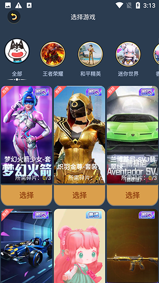 2、可以看到大部分热门游戏的皮肤都有,每种皮肤都是需要三块对应的碎片才能兑换的。