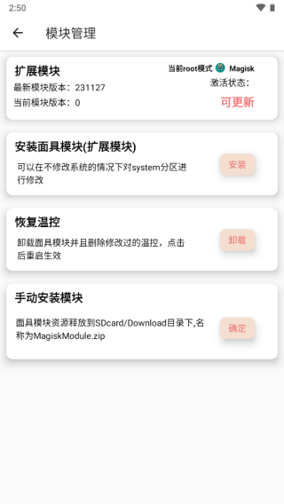 5、通过淦MIUI温控app还可安装面具(magisk)增强模块。