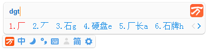 厂(“厂”→“一”、→“丿”、→空格) 编码为【dgt】