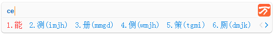 2、输入一般的一个汉字: 下面括号中的是各个字的简码及全码。
