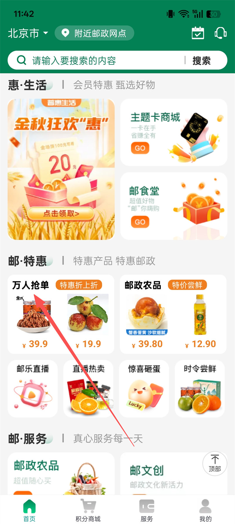 邮生活App怎么获得积分