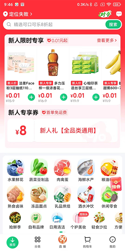 水果蔬菜、肉禽蛋奶、粮油调味、酒水饮料、