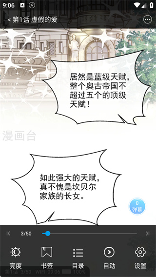 进入阅读,根据喜好调节亮度、开启自动阅读,用书签标记进度,参与弹幕互动。