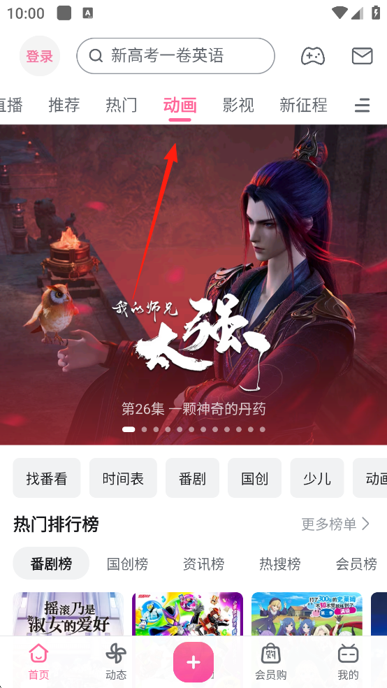 1、打开哔哩哔哩动画App,在首页中点击动画界面,并选择你要观看的动画