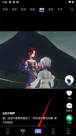 2、探索页面中有各类短视频,包括搞笑、影视、游戏、美食等。