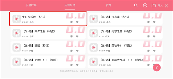 2、在找到全部乐谱中选择您想练习的乐谱。
