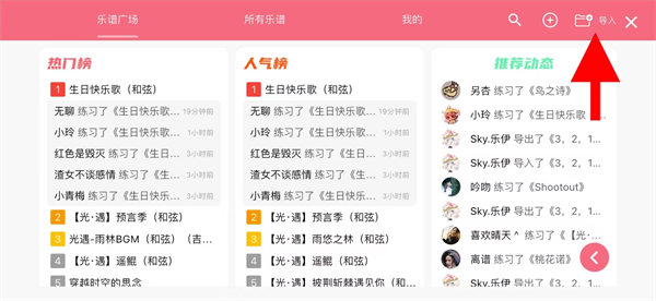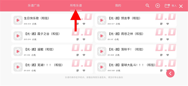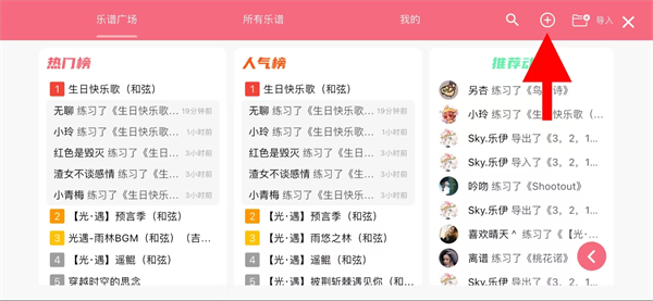 光遇琴谱App是一个提倡创作的乐谱交流平台,您可以在乐谱列表的右上角点击+号图标,进行创作。如图: