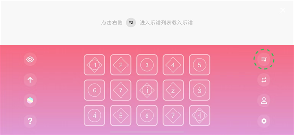 1、点击右侧菜单的列表图标进入乐谱主界面。