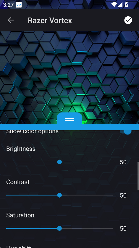 3、大多数壁纸都能很好适配,但在手机上设置时,可以将界面底部的蓝色选项上拉,关闭“对运动做出反应”功能或调整运动轨迹的灵敏度,这样可以手动调节壁纸的位置,避免因陀螺仪等设备造成偏移或不美观的情况。这一操作不会影响特效功能的正常使用。
