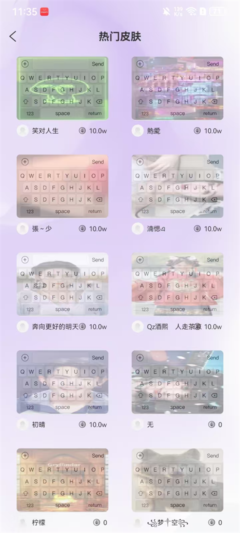 3、分类查找你喜欢的键盘皮肤;
