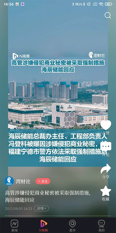 3、N视频:南方都市报各大入驻媒体号发布的视频;