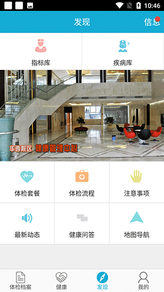 华西健康app是四川大学华西医院推出的在线医疗服务软件,主要业务包括体检预约、重病危机预警推送、体检档案查询、对比分析、专家咨询、疾病风险在线评估、复诊提醒及随访服务、穿戴设备对接、运动记录等,并重点建设平台安全体系,保障每一位用户的隐私安全,平台通过多渠道实时采集用户健康数据,整合华西专业医生资源及全省专业医疗资源,为患者与专业医师搭建健康诊疗服务平台。同时华西健康还提供线上线下相结合的全程健康管理与医疗一站式服务,打开手机就可以将自己的体检报告导入,会自动为你进行全面的分析,让你可以对各项数据有一个更全面的了解。