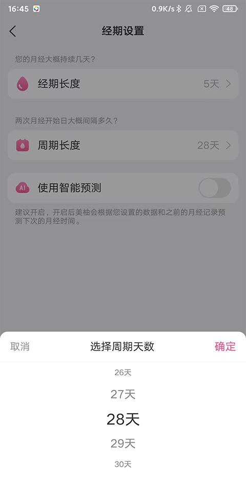 3、除了修改经期日期外,你还可以根据自己的实际情况调整周期长度。在经期设置页面中,找到“周期长度”选项,并进行相应的调整。这有助于美柚APP更准确地预测你的下一次经期。