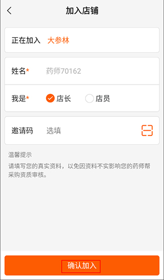 5、最后找到自己的药店之后先输入信息,点击“确认加入”即可。