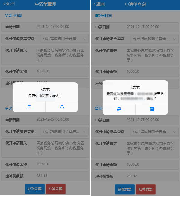 确认信息,包括发票号码和代码,如下图: