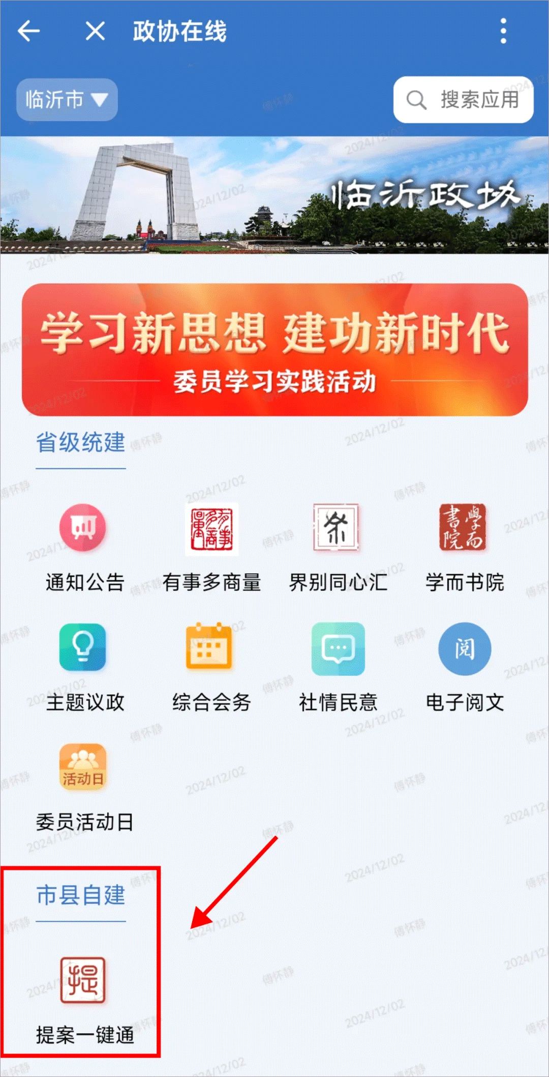 2、在手机端登录“山东通”,依次进入工作台→政协在线→提案一键通,启动提案系统。