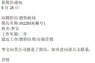 有应聘立即通知:有人投递简历了,手机立刻收到提醒,不错过好员工!