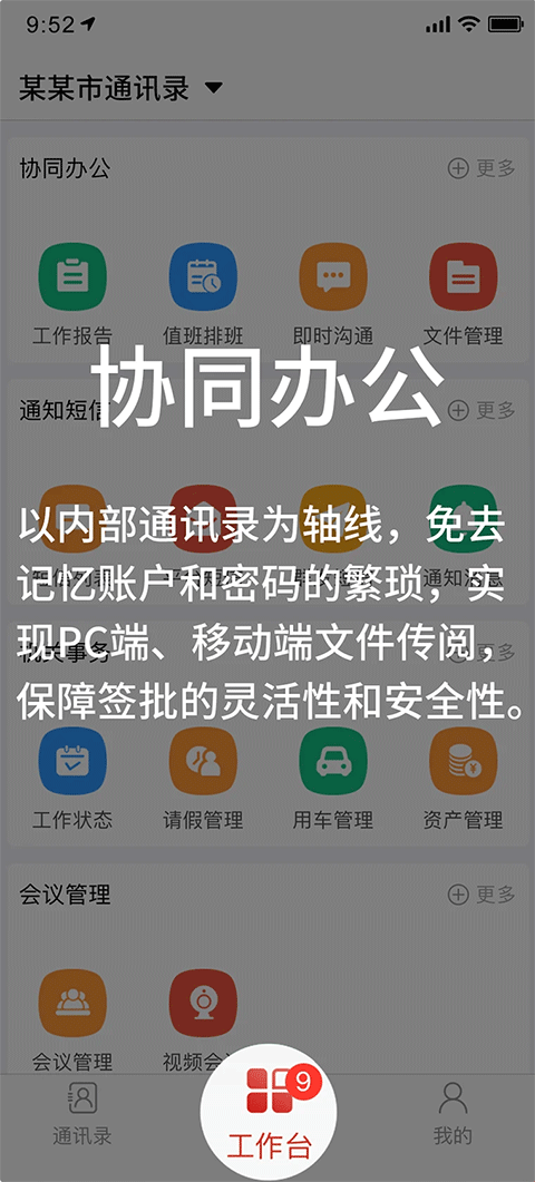2、以内部通讯录为轴线,免去记忆账户和密码的繁琐,实现PC端、移动端文件传阅,保障签批的灵活性和安全性;