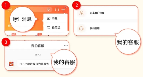 操作路径:哈尔滨银行APP-首页-点击右上角“+”-消息-我的客服